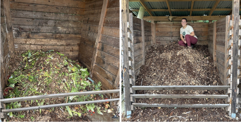 Global food waste surpasses 2.5 billion tons annually, and–in the US–food waste takes up 22% of landfill space. As that food is compressed in landfills it releases methane via anaerobic decomposition, contributing to global warming. Composting conserves landfill space and redefines “waste” by giving tossed food new life as highly fertile soil, transforming the farm-to-table line into a circular economy. Before this summer I knew of small-scale compost, but had no experience with a compost facility at an agricultural or industrial scale. In my position at Food Shuttle, that changed pretty quickly!